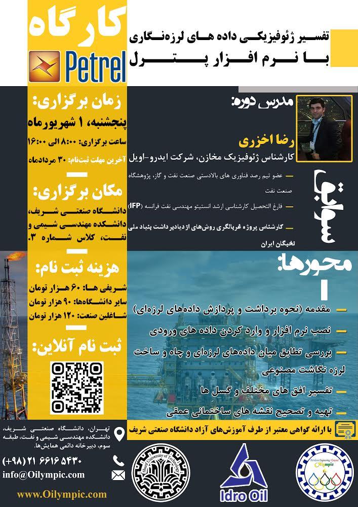 دبیرخانه المپیاد علمی – پژوهشی مهندسی نفت با همکاری شرکت ایدرو اویل برگزار می کند: کارگاه یک روزه تفسیر ژئوفیزیکی دادههای لرزه نگاری با نرم افزار پترل با اعطای گواهی معتبر از طرف آموزش های آزاد دانشگاه صنعتی شریف.